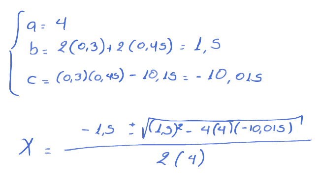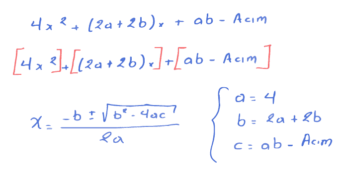 Para tener una expresión cuadrática y poder utilizar la fórmula general será necesaria igualarla a cero, para eso pasamos al otro lado el Acim con signo negativo, quedando: